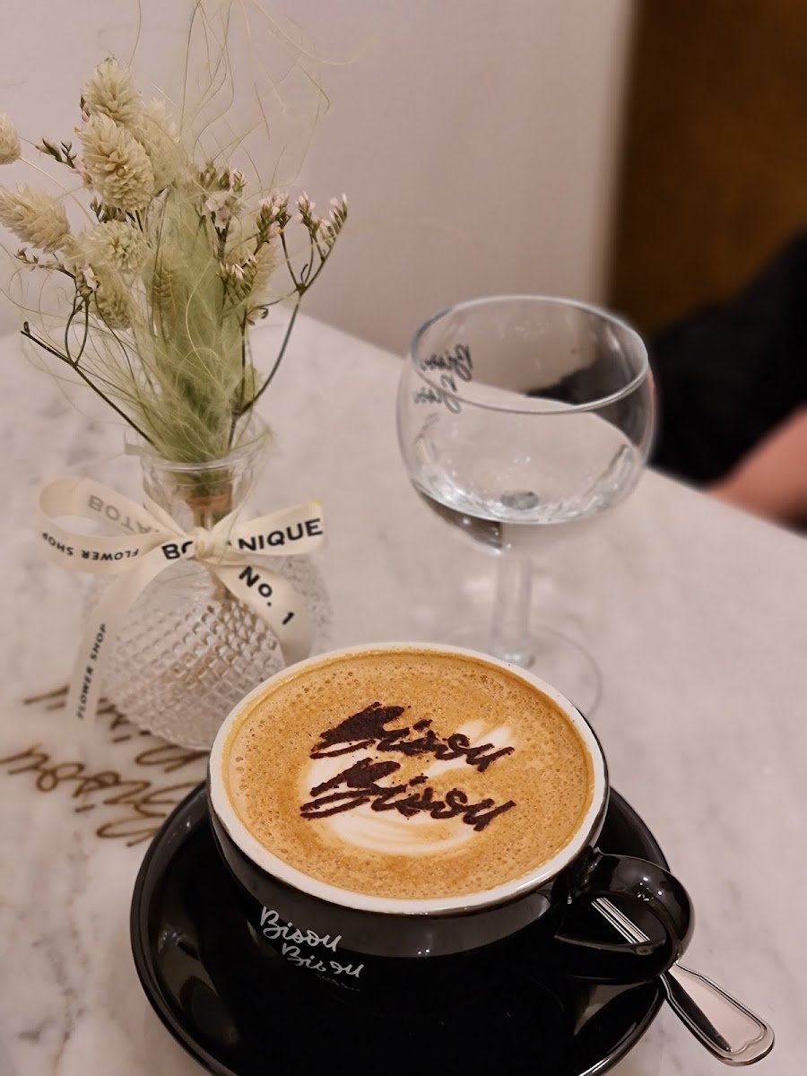 Stepping into Bisou Bisou, you are immediately greeted by an intimate yet stylish ambiance that invites you to unwind. With its chic furnishings and carefully curated decor, the café creates a warm and welcoming atmosphere that's perfect for both casual meet-ups and quiet moments of enjoyment. Although seating is limited—something that might evoke a touch of claustrophobia on busy days—the charm of the place more than makes up for it. Enjoy your coffee at one of the few outdoor tables while soaking in the vibrant street life around you.